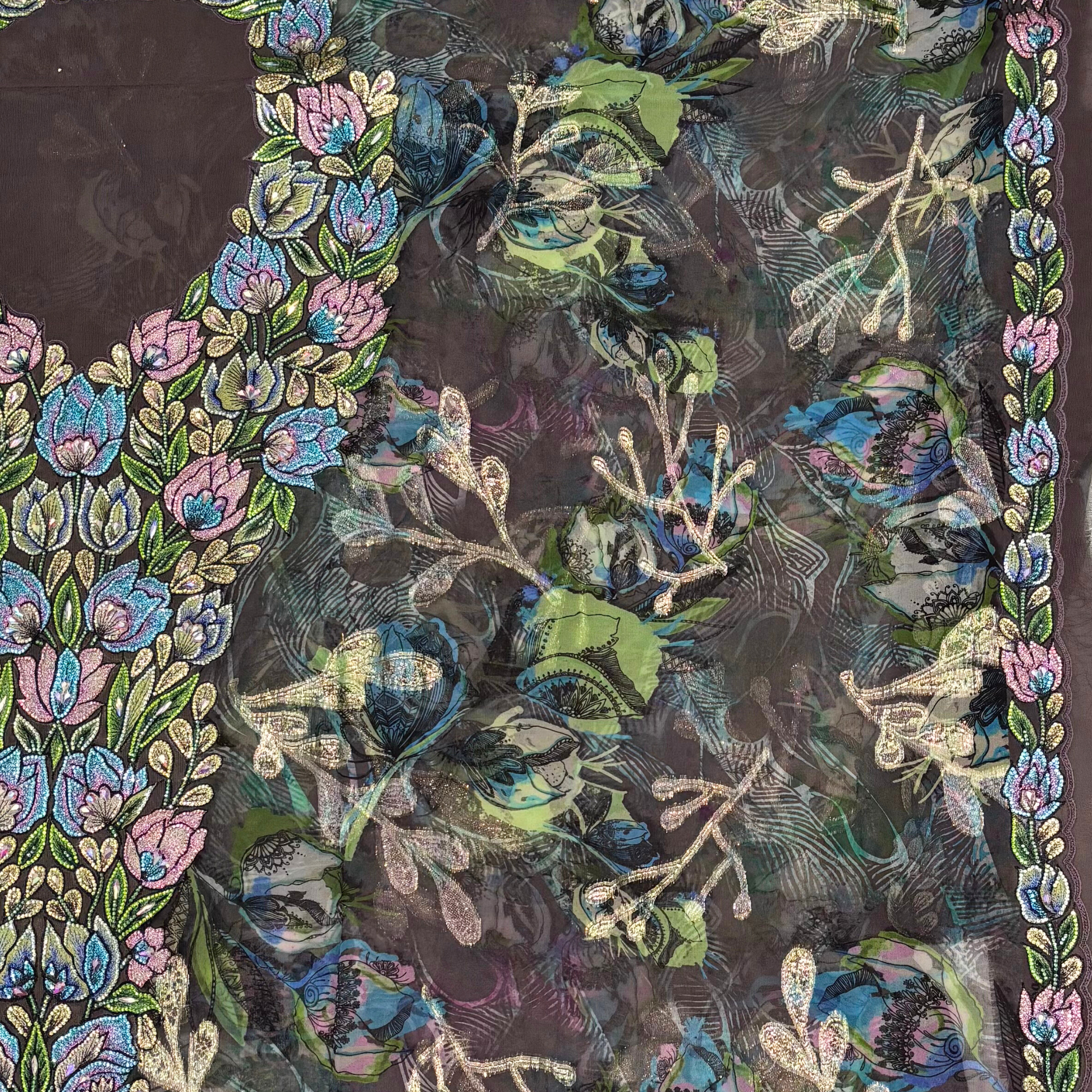 - Fabric: Indian Silk and Zari Chiffon,